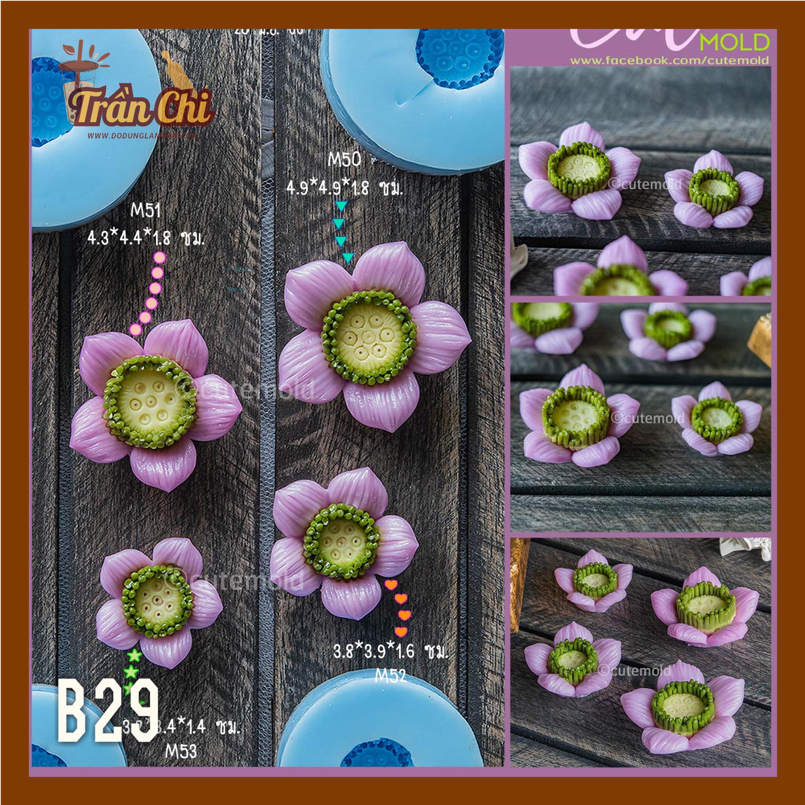 B29 - Set 4 khuôn silicone Hoa SEN 5 cánh NEW (24/9)