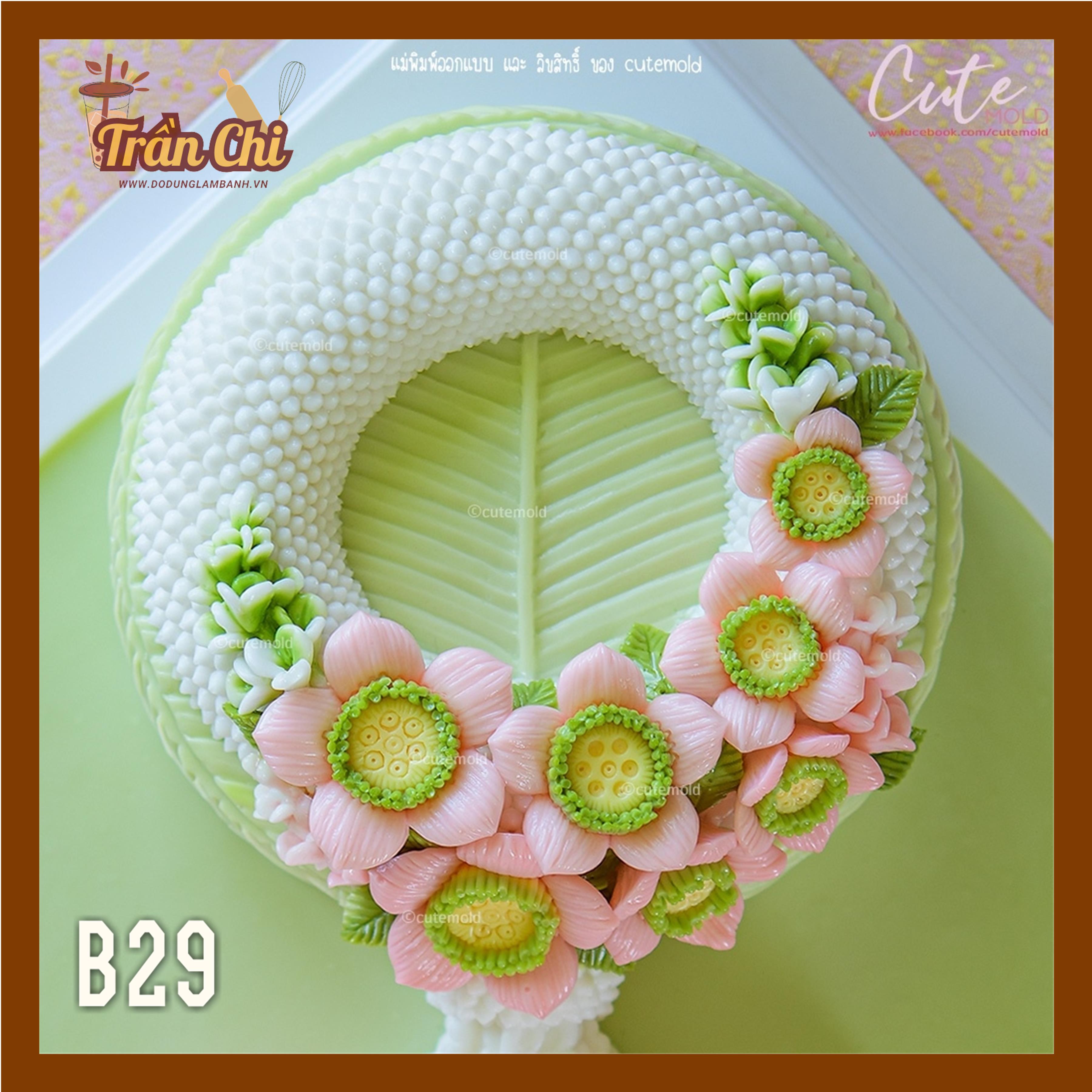 X08 - Khuôn silicone Mặt CÀNH LÁ SEN 2 (25/3)