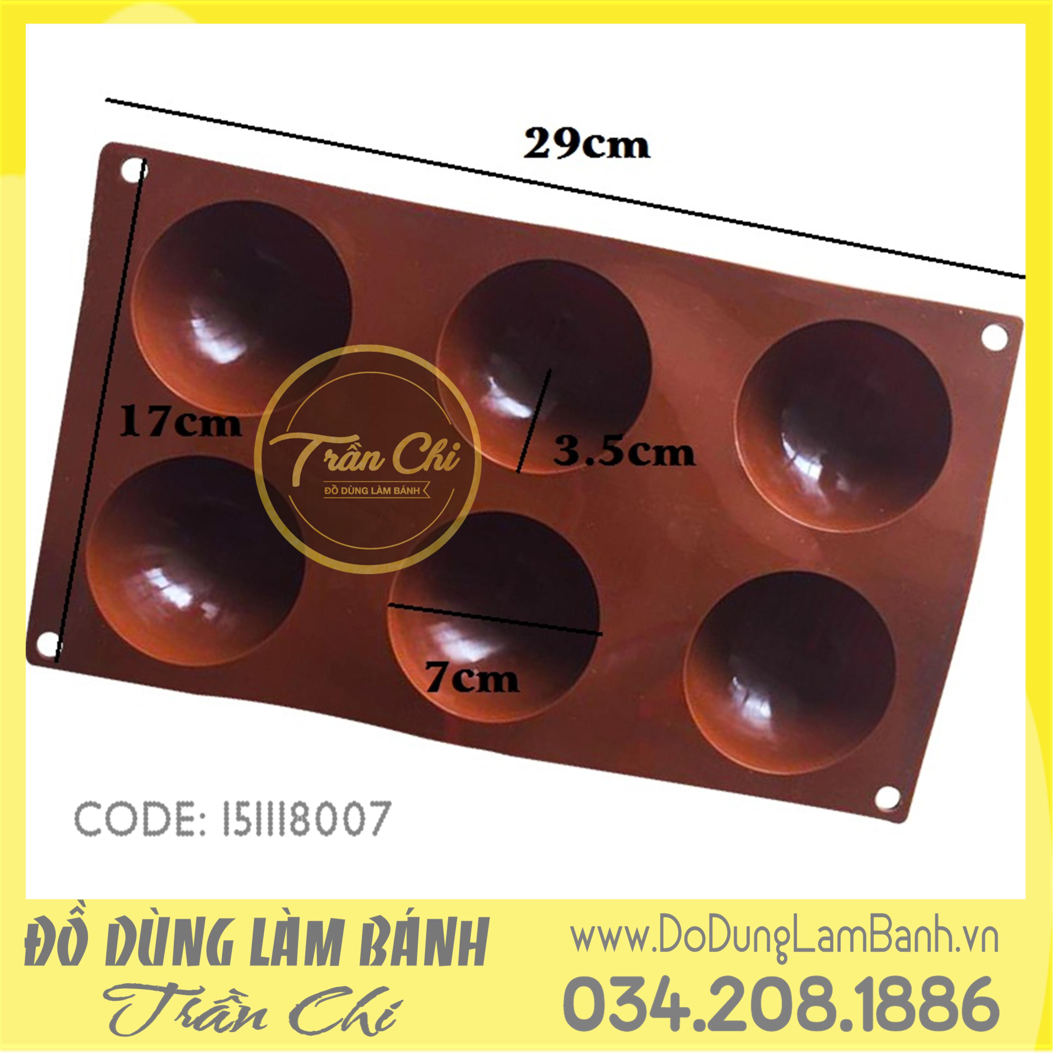 SL68 - Khuôn silicone vỉ Bán Cầu LỚN 6c - Size 6.8cm (14/3)