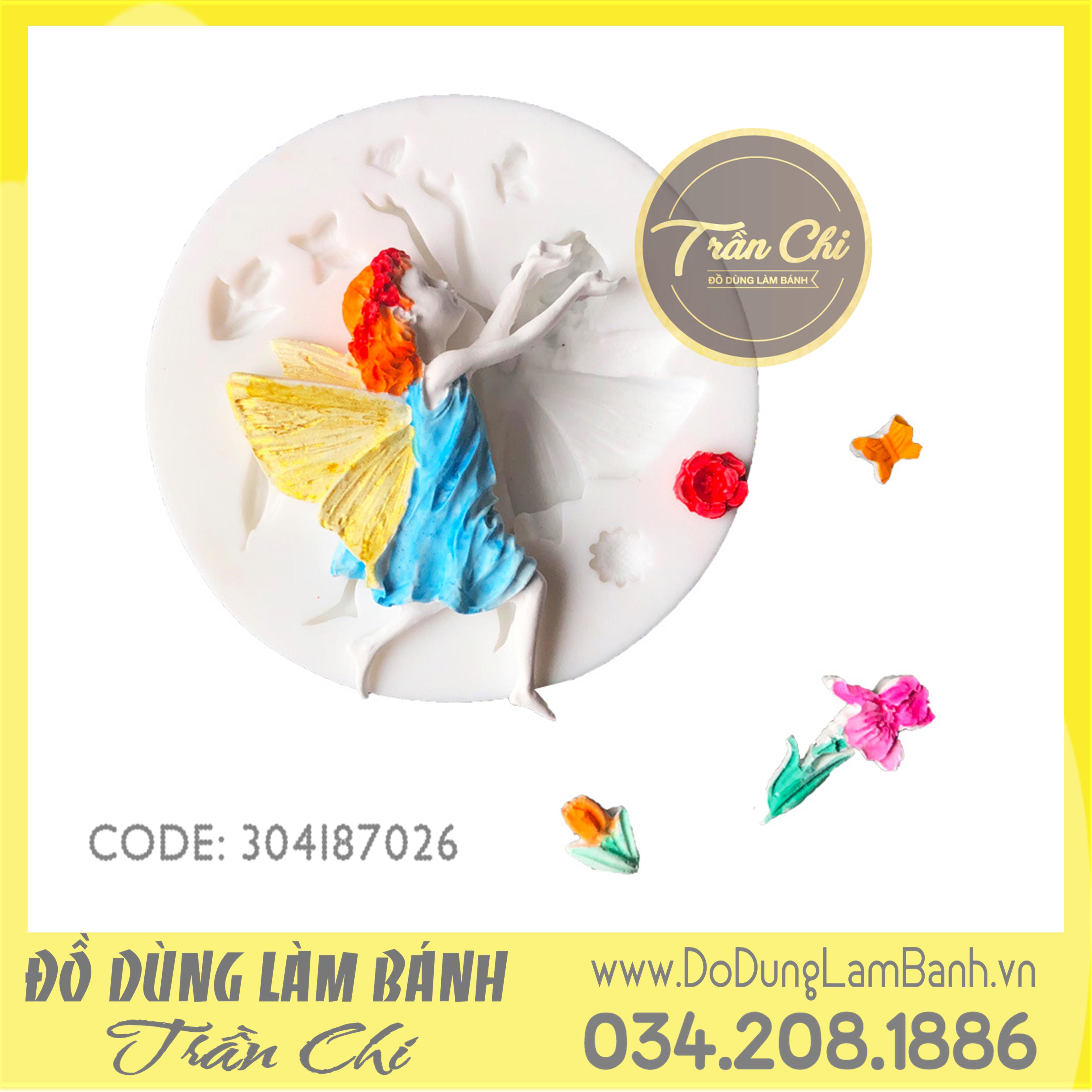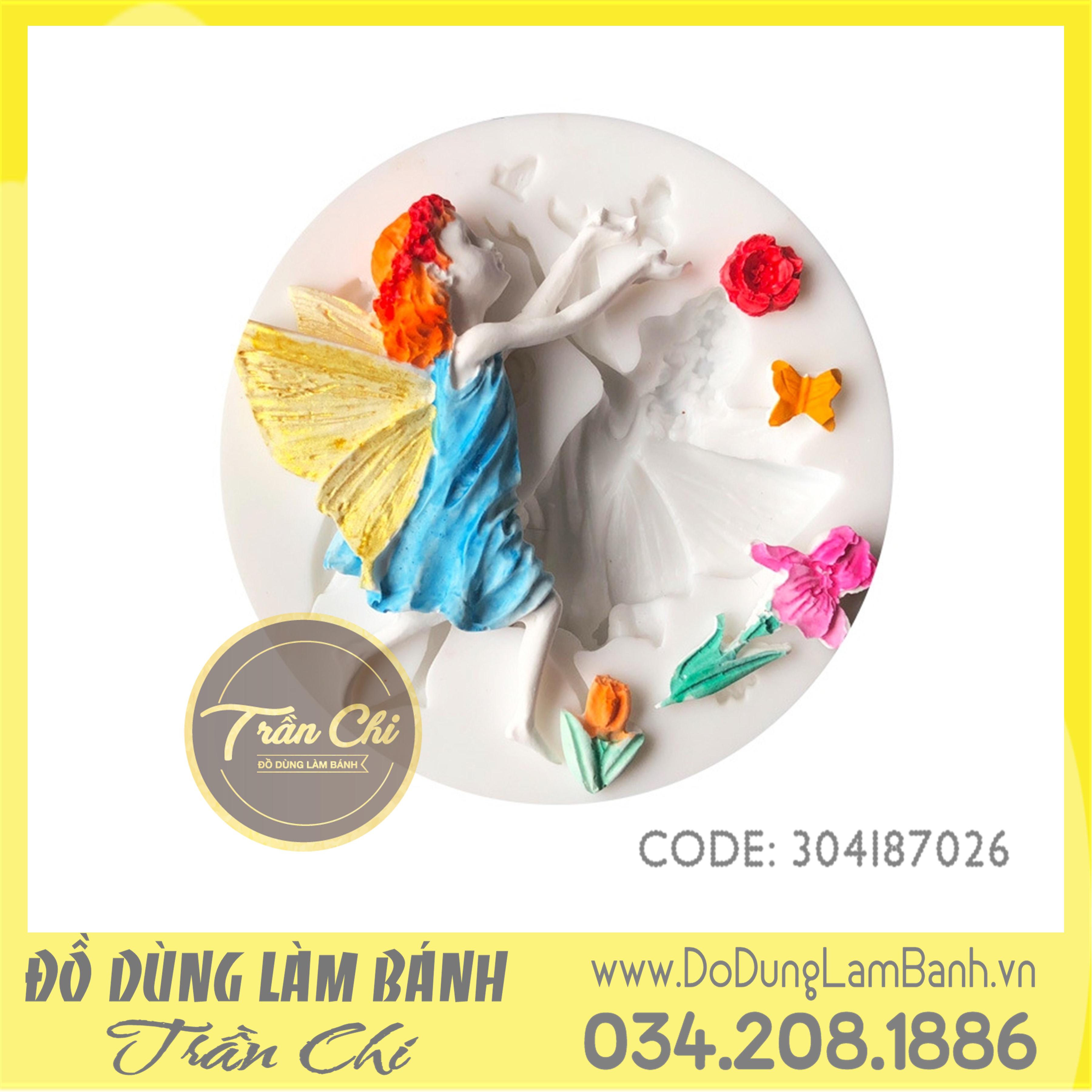 Khuôn silicone Bé gái đuổi bướm và hoa