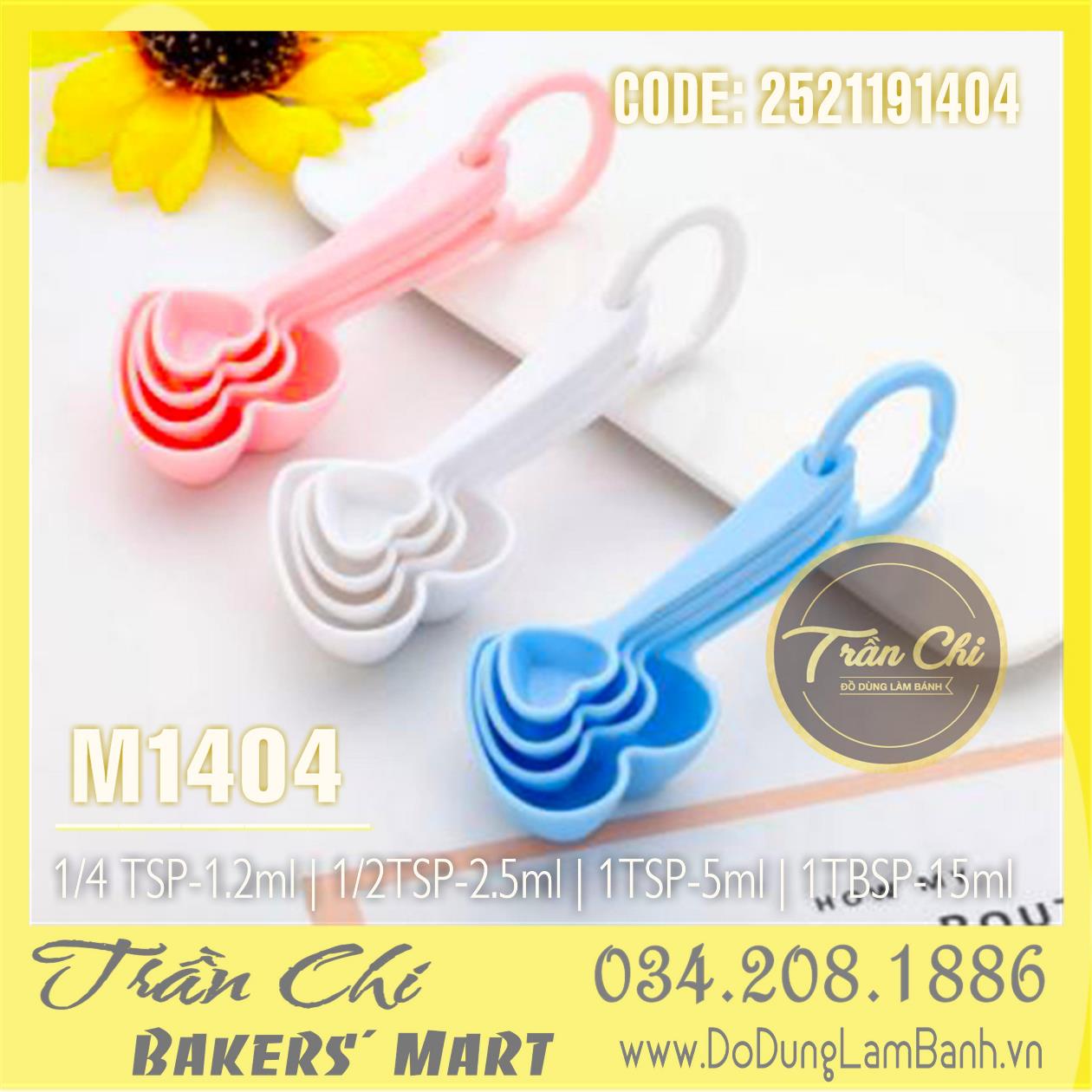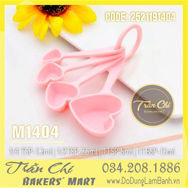 Bộ muỗng đong đo lường TRÁI TIM 4c nhựa (MÀU NGẪU NHIÊN) (M1404)