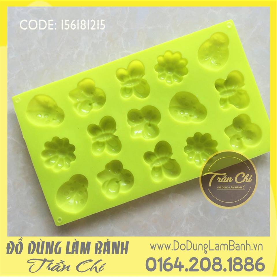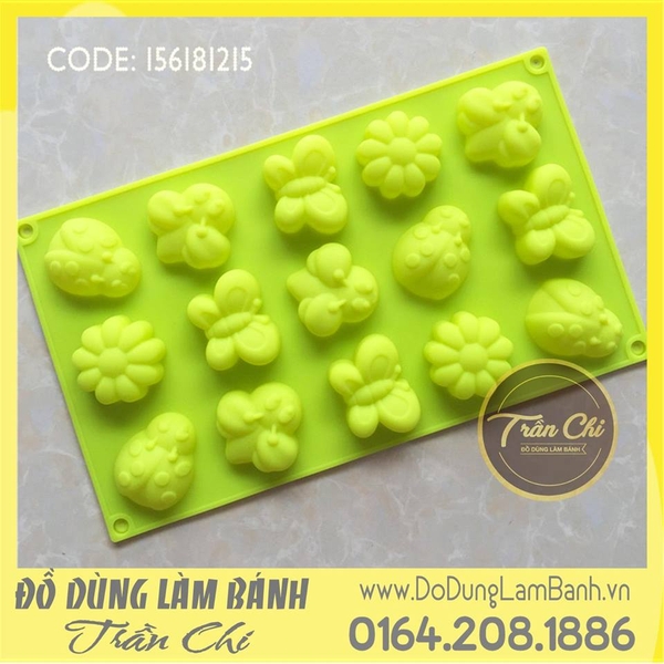 Khuôn silicone vỉ bướm, bọ, ong, hoa 15c