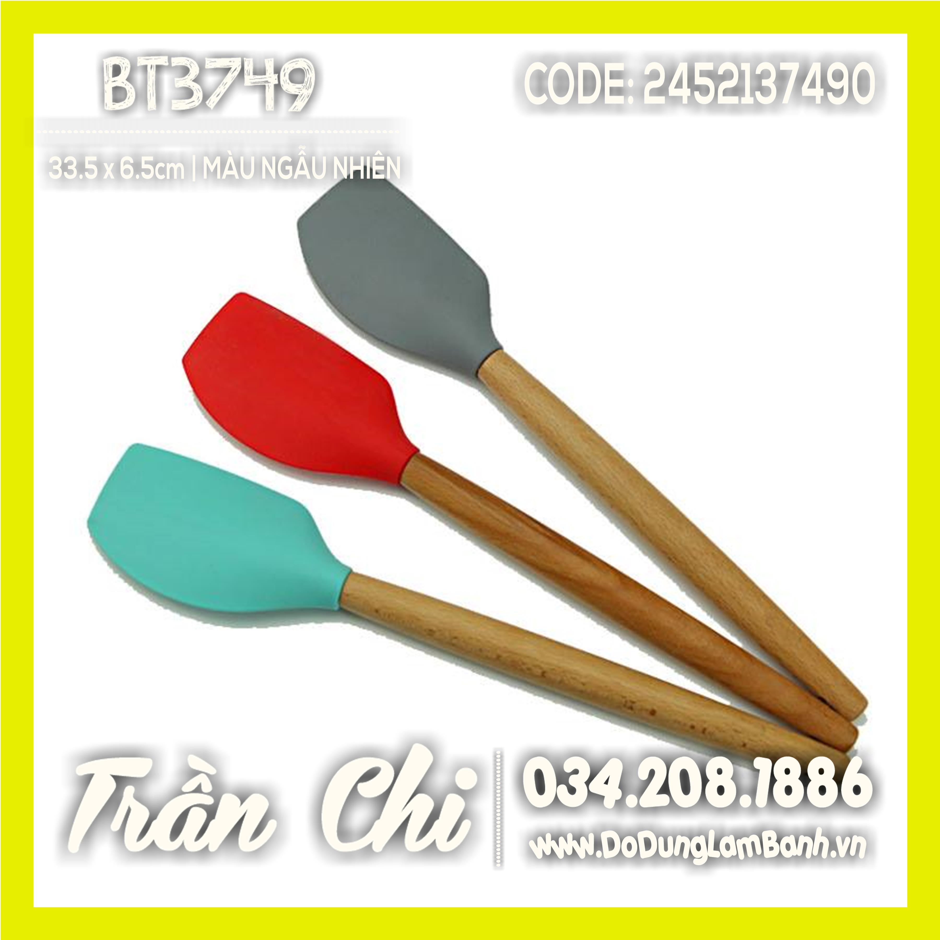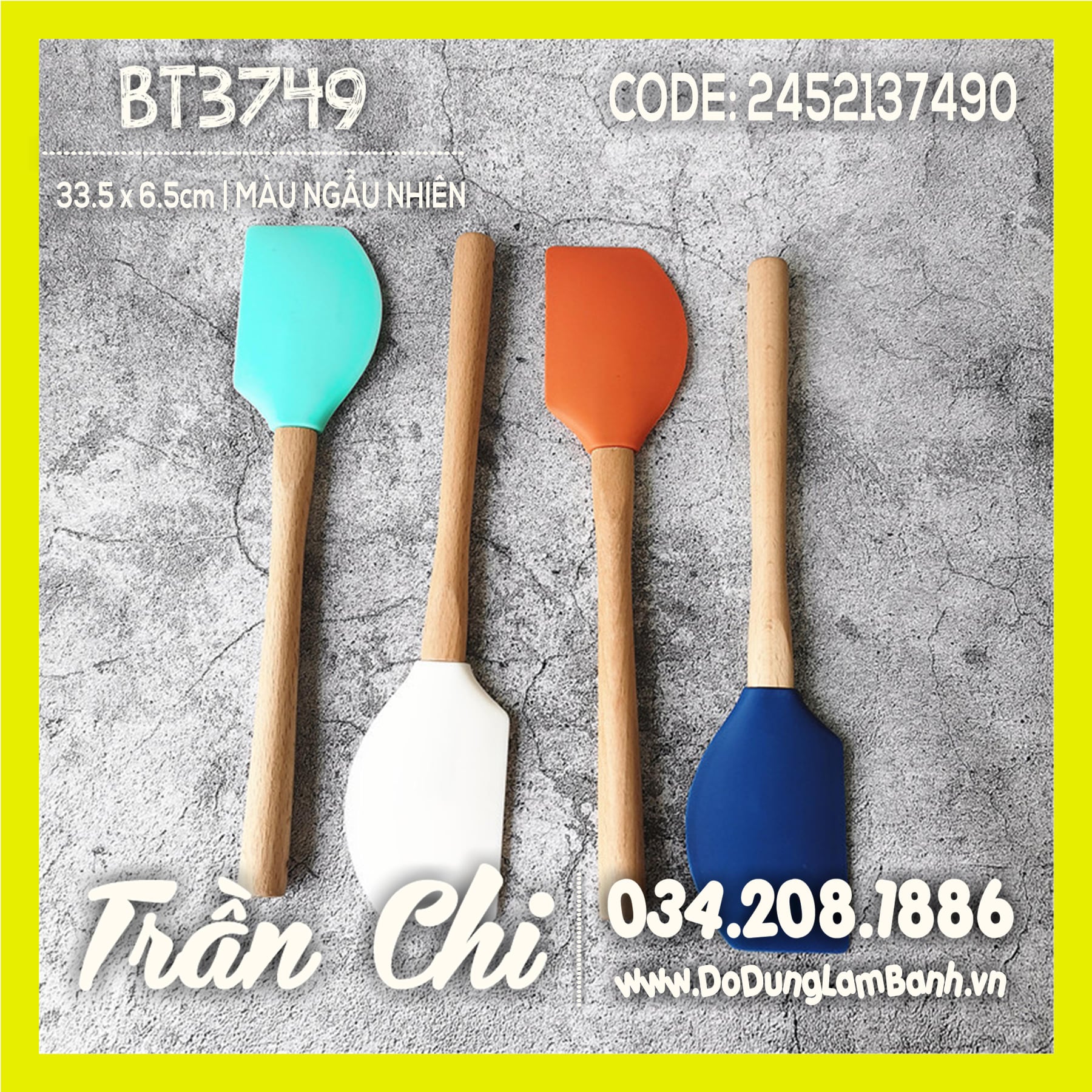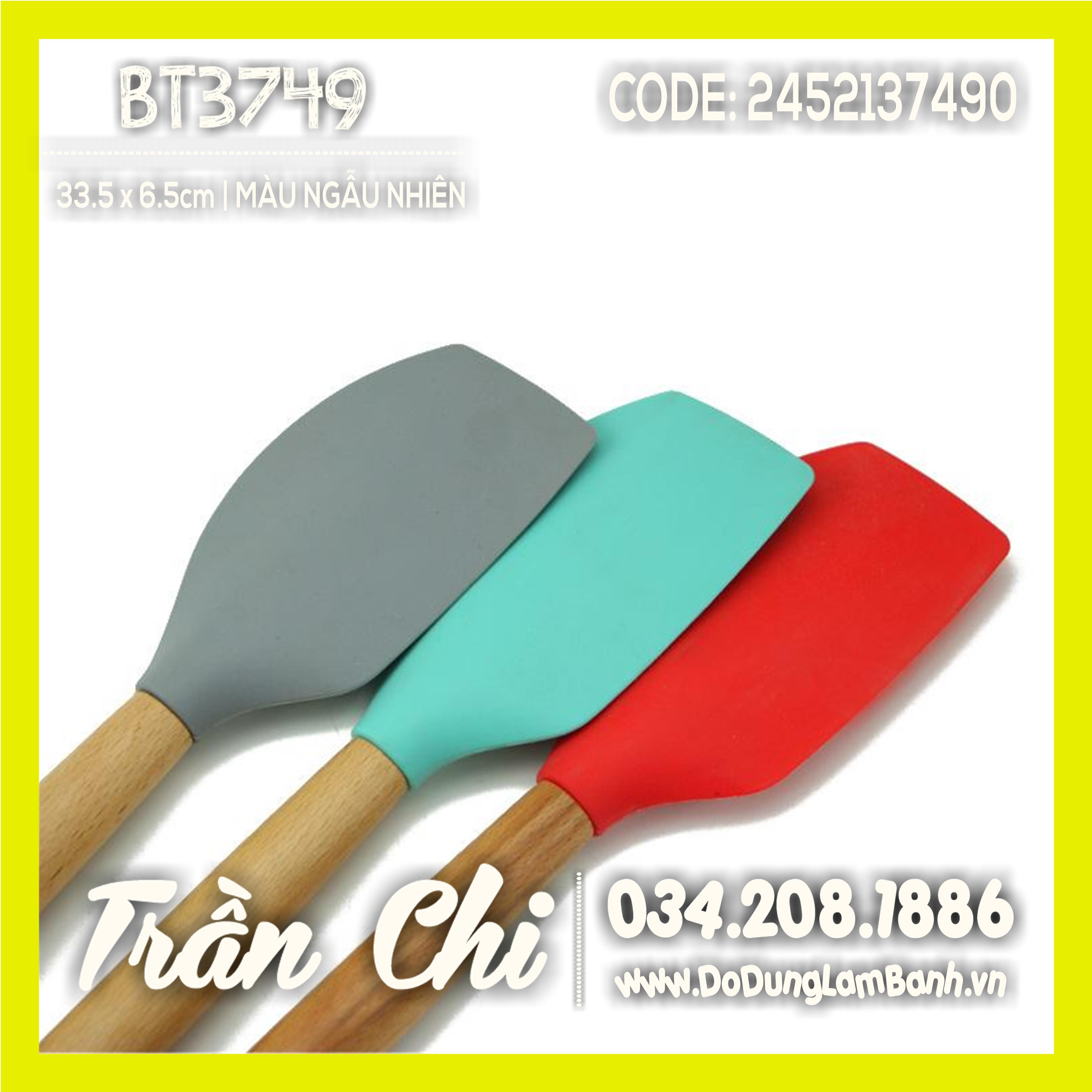 Cây phới vét dẹp SPATULA silicone CÁN GỖ - 33.5cm (MÀU NGẪU NHIÊN) (BT3749) (Updated 11/21)