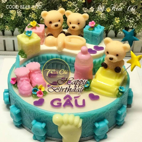 Khuôn silicone Gấu áo len W ngồi 3D - Nhỏ