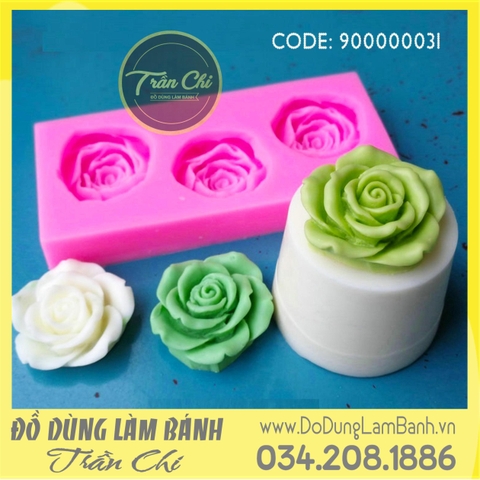 Khuôn silicone hoa Hồng nở xòe vỉ 3c