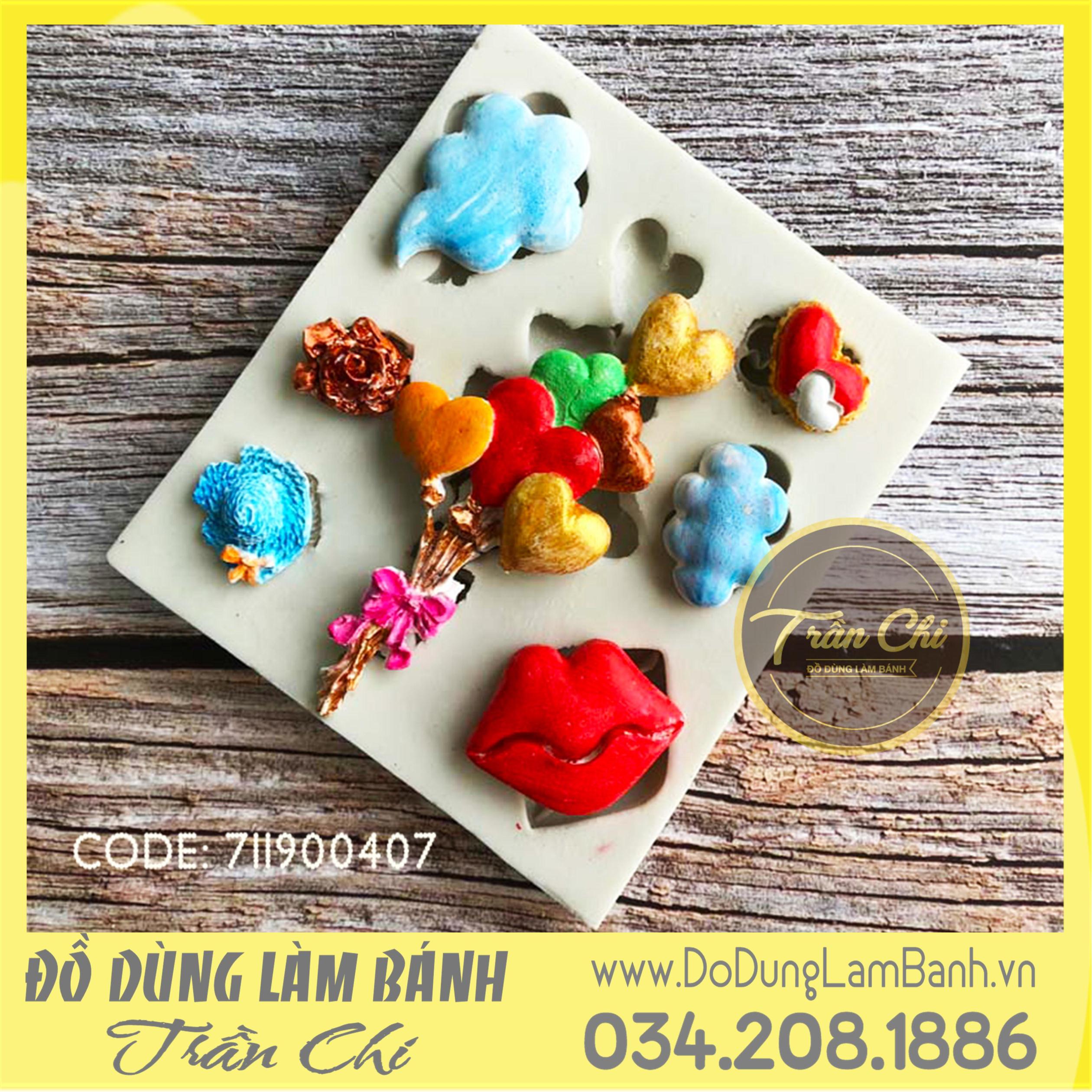 Khuôn silicone Bong bóng tim, môi, nón, hoa, mây - Xám