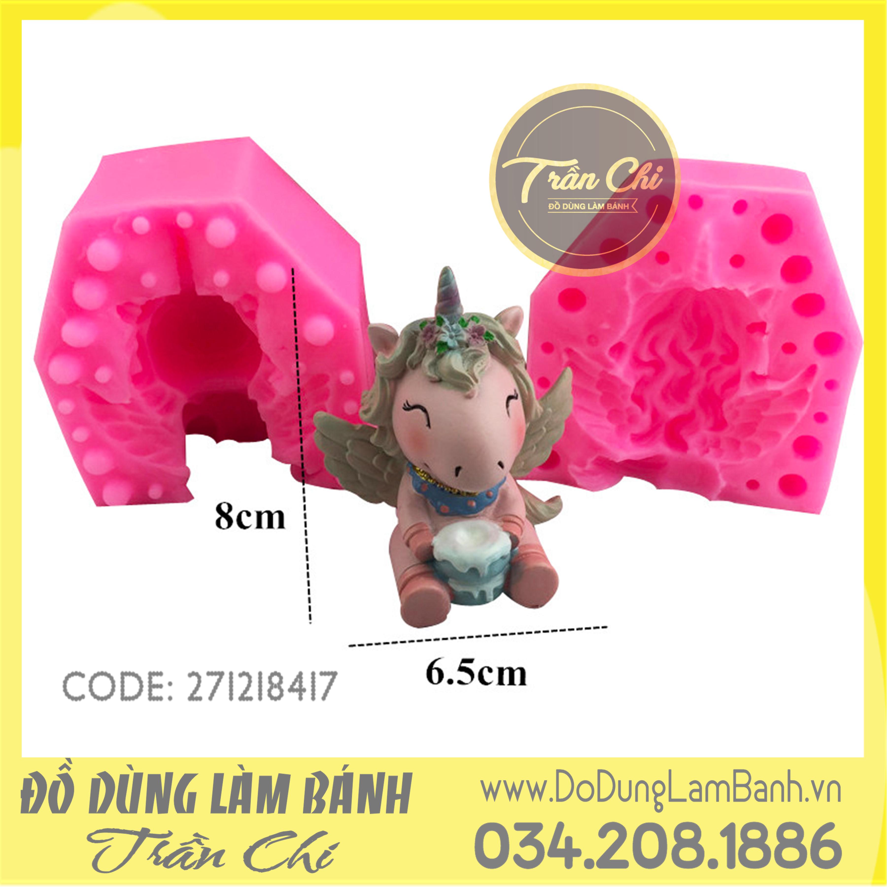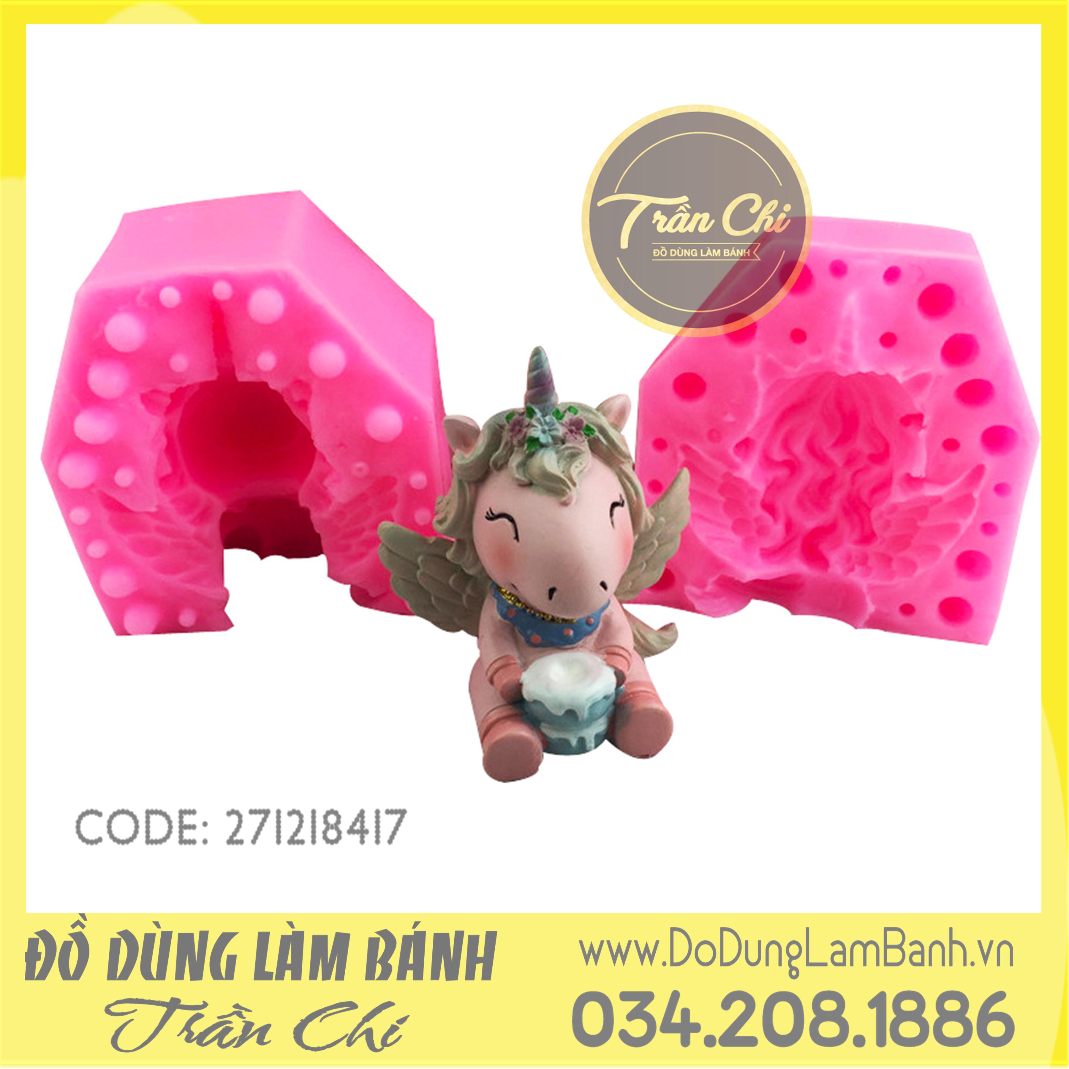 Khuôn silicone Ngựa Unicorn 2 cánh cài hoa ngồi (2 mảnh)