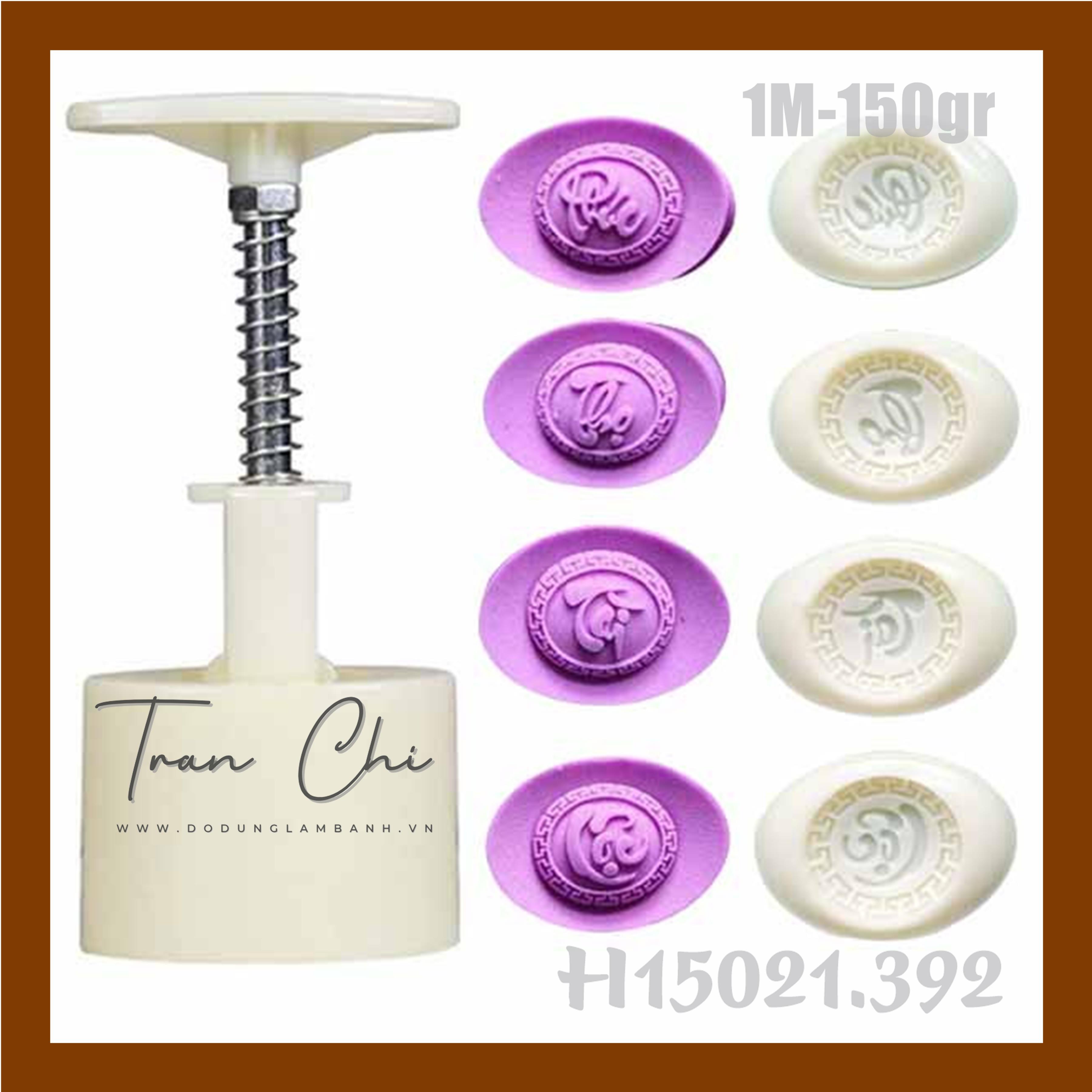 T1584 - Khuôn ấn trung thu lò xo TRÒN 150gr 4 mặt 2025 - Mẫu 1