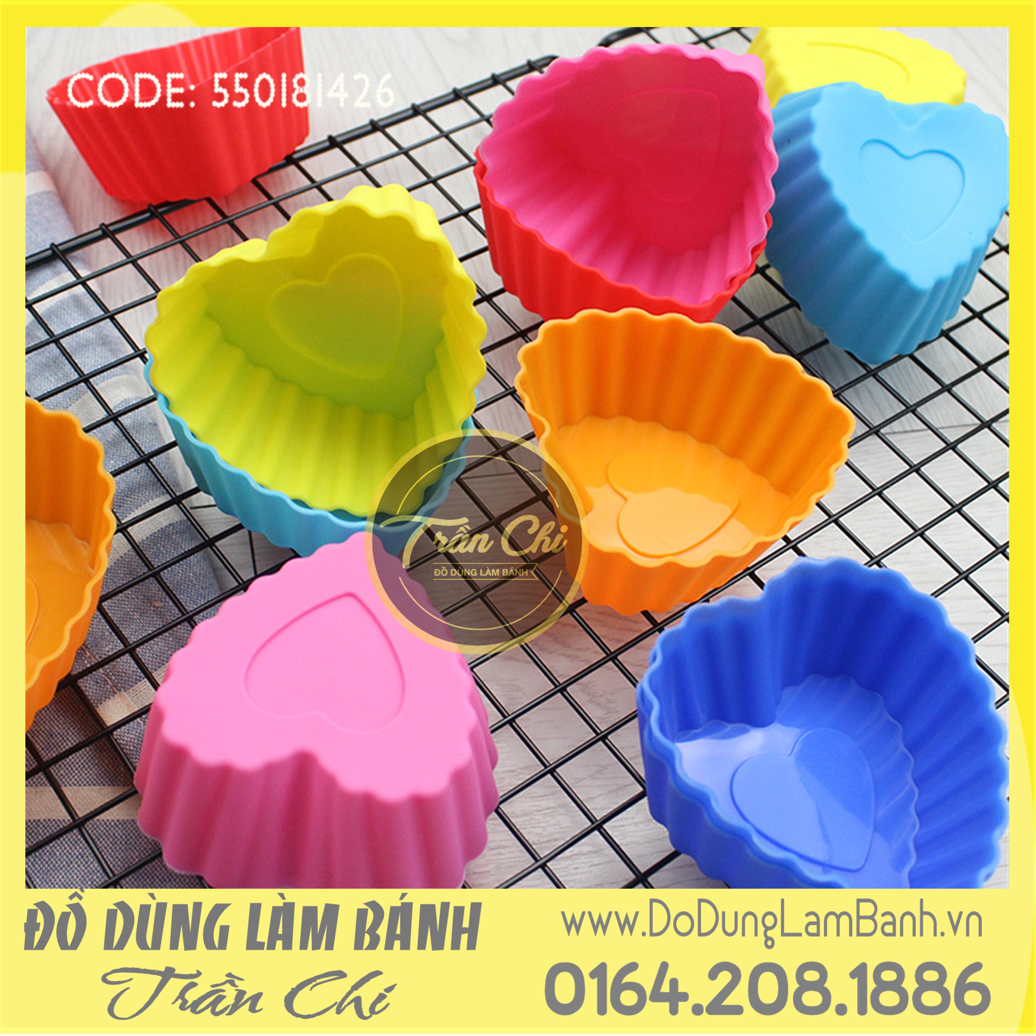 Set 10 khuôn silicone cupcake TIM đáy tim 7cm