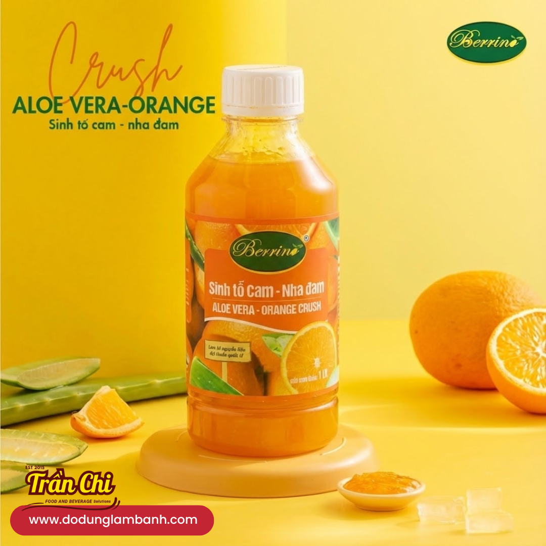 - Sinh tố BERRINO Cam Nha Đam - Chai 1L với thành phần gồm có Nha Đam (25%), Cam (15%) được nghiền đặc, kết hợp với đường, nước và các hương vị tự nhiên, tạo thành một hỗn hợp mứt sệt trái cây – giúp cho sản phẩm đồ uống của bạn thơm ngon và chất lượng hơn.